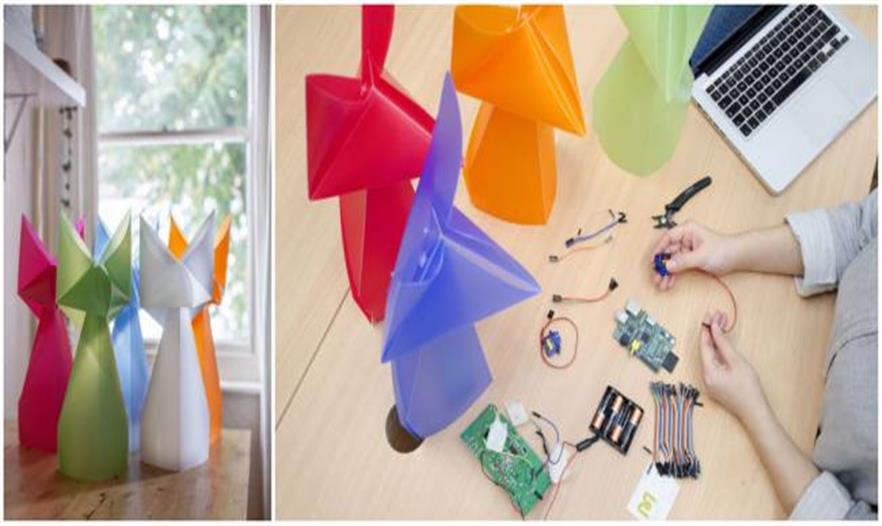 日本姑娘 Coco Sato 是個熱愛手工的藝術(shù)家。她喜歡設(shè)計好玩的方法來鼓勵人和人溝通,還用一些藝術(shù)裝置來創(chuàng)造出感覺很奇妙的公共空間——比如說,把一群折紙手工做的小狐貍帶到花園里去。 這其實是她最有名的一個項目,叫 Roborigami。這個名字把英文單詞 Robot (機(jī)器人)和日語詞匯 Origami (折紙)結(jié)合在了一起,直譯下來是“折紙機(jī)器人”,但僅從外觀看,它幾乎就是放大版的折紙作品,輕巧、簡單,又帶有紙張的質(zhì)樸,仿佛就像我們小時候那樣,簡簡單單做做手工就完成了。它們很可愛,也美。 實際的制作過程呢,先用紙質(zhì)模板試驗一遍,真正地去折紙,之后才把塑料薄片做成折紙作品的樣子,中間放上電子儀器以令它輕輕擺動,并且發(fā)出聲音。