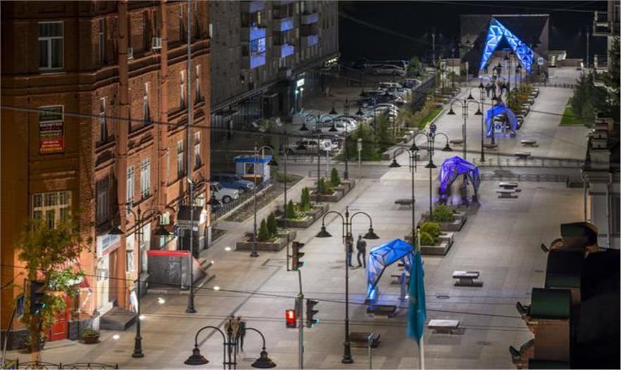 為了慶祝其300周年紀(jì)念日,鄂木斯克的西伯利亞市決定修復(fù)該城市中心的Valikhanov街,其切斷了該城鎮(zhèn)的歷史部分。這個(gè)項(xiàng)目包括鋼鐵和玻璃晶體的設(shè)計(jì)和建造,分散在街道沿線,就像魔法一樣。3個(gè)蓬蓋、5個(gè)資訊亭、2個(gè)噴泉以及一個(gè)層疊的玻璃雕塑都是該設(shè)計(jì)的一部分,而且評(píng)審表?yè)P(yáng)了產(chǎn)生這些結(jié)構(gòu)的各種方法和生產(chǎn)技術(shù)。