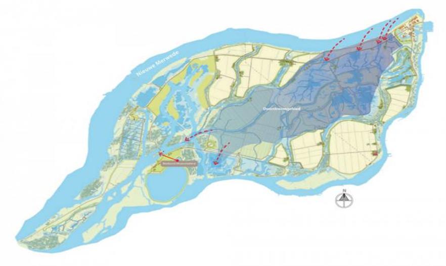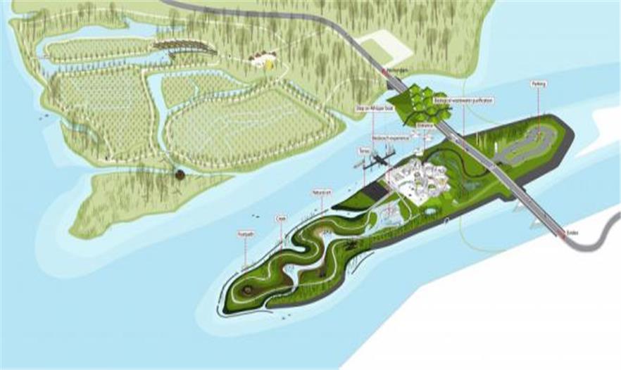水源安全是Biesbosch Museum Island開發(fā)的主要原因。作為國(guó)家水源安全項(xiàng)目的一部分,4450公頃的Noordwaard澤地已經(jīng)變成一塊水源保護(hù)區(qū)。Biesbosch博物館的兩側(cè)的土壤被挖開,從而形成一座新的小島。