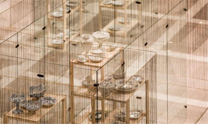 這個(gè)住宅項(xiàng)目的主題,從展出文物衍生,開始于在前室中使用的一種瓷器,日常使用,以及那些更私密,在臥室使用的瓷器,然后返回。格擋以黃銅為骨,填充以黑色線。這些格擋漂浮在地板之上,給予亮度和透明度的印象。創(chuàng)建一個(gè)特定的、觀賞的質(zhì)感。