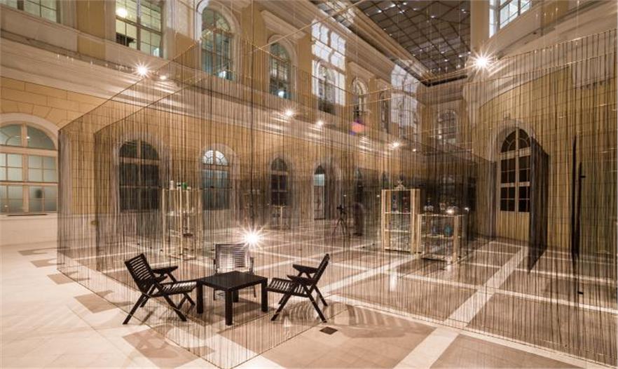 展覽設(shè)計(jì)涉及游客的作為展覽空間的積極參與者體驗(yàn)。放入一般福關(guān)系,布局目的鼓勵(lì)觀眾的幾種參與,通過一系列不同的氛圍引導(dǎo)他們。設(shè)計(jì)基于劃分,在大空間中分隔成若干小空間。房間可以一個(gè)接一個(gè),類似于通過狹窄走廊,住宅公寓大房間之間的連接方式。