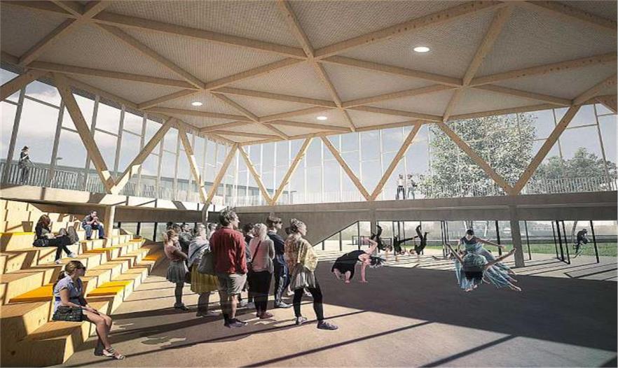 奧爾胡斯市Viby South區(qū)一直存在社交問題?,F(xiàn)在是時候?qū)⒃搮^(qū)域改造成一個受歡迎的住宅區(qū)。C.F. Møller Architects事務(wù)所被委任建造該區(qū)域新的聚集點:社區(qū)中心。這個項目的理念是將當?shù)貙W校Søndervangsskolen改造成該區(qū)域新的聚集區(qū),將該學校的設(shè)施融入到社區(qū)中心里。該社區(qū)中心被設(shè)計成現(xiàn)有學校的延伸區(qū)——該延伸區(qū)是玻璃立面,將是一個過渡區(qū),將該學校與新建筑結(jié)合起來,進而連接整個區(qū)域。階梯和坡道引導游客到達入口,使不同水平的地面區(qū)域進行平穩(wěn)過渡,并且建造用于休息和不同類型活動的座位。該社區(qū)中心將是靈活性的布局,提供各種運動空間、語言課程室、音樂會等。學校與社區(qū)中心設(shè)施的融合能最大化全天候地使用房屋建筑。