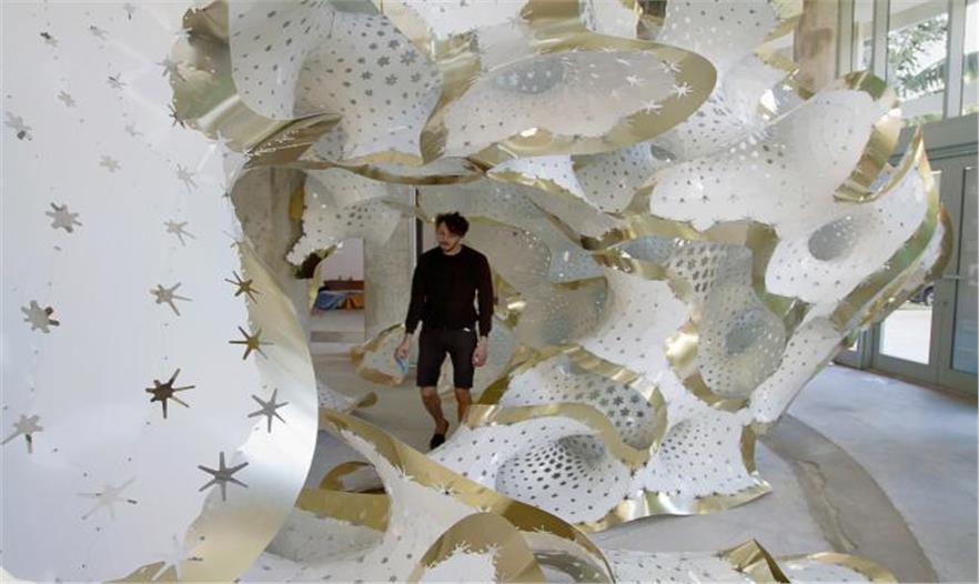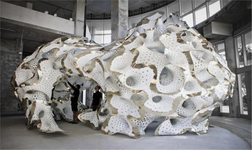 在最近正在火熱舉辦的巴塞爾邁阿密藝術(shù)博覽會上,由Marc Fornes / THEVERYMANY設(shè)計事務所設(shè)計的作品“Labrys Frisae”展廳吸引了人們的主意,值得注意的是的這座裝置設(shè)計歷時整整三年多,從2011年直到2014年。