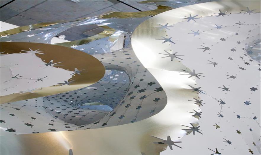 該展廳內(nèi)部采用了不到一毫米厚的鋁材進行搭建,并且在設(shè)計中模糊了邊界也空間的概念,為參觀者打造了一種“沉浸式的多重感官體驗”。