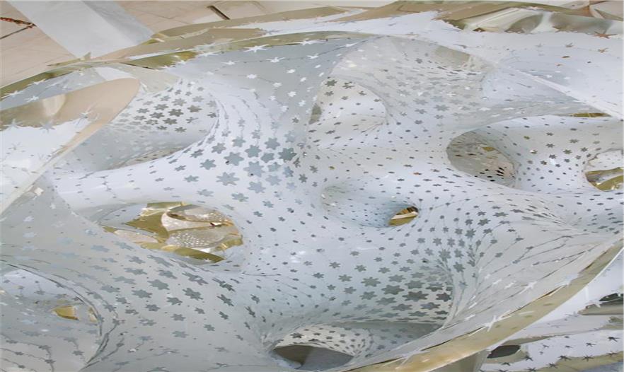Labrys Frisae可以說是Fornes 作品中“條紋形態(tài)學”的體現(xiàn),“在這個裝置的研究過程中,它被用以條紋、嵌套的材料,切作薄片,然后用成千上萬的鉚釘進行連接,利用彎折區(qū)域作為連接點。設(shè)計的過程進行了詳盡的進行了一系列的試驗,不斷的發(fā)現(xiàn)錯誤進行結(jié)論,然后重新設(shè)計,我們鑒證了一個細致的動手裝配過程。”