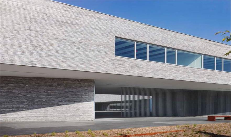 磚塊和玻璃被用于外墻。他們既開放又安全,既通透又不透明,只是為了給使用者提供愉悅的學(xué)習(xí)社交環(huán)境。學(xué)校還連接著一個(gè)正在施工的公園。