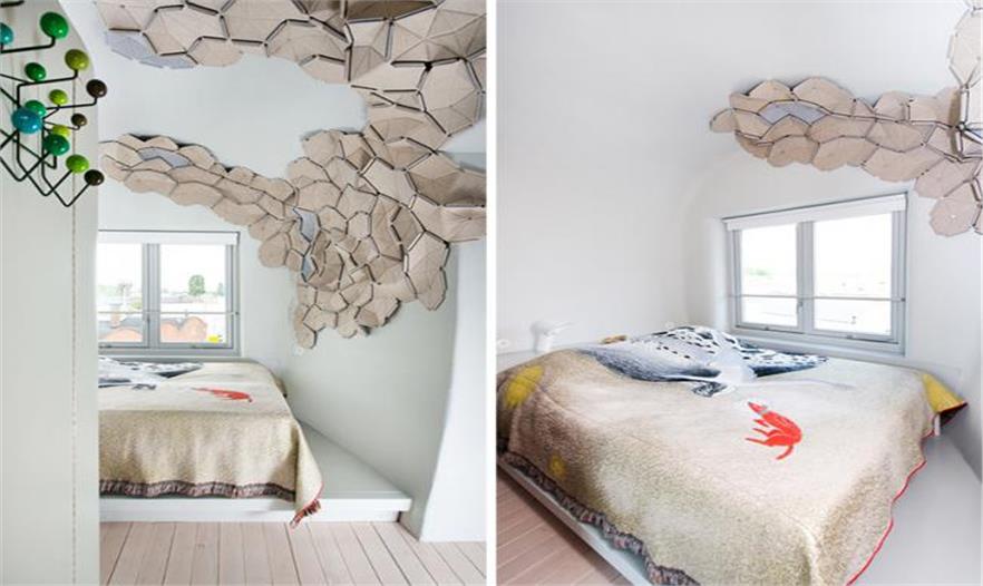 Lucy GLXY位于之前機(jī)械廠Eysink(現(xiàn)在是SpaceCowboys的工作室)的屋頂上。該酒店光滑的墊料表層顯示出它是一個(gè)豪華的住宅單元。