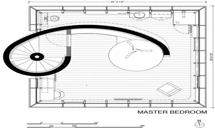 這座房子的名字叫“太陽(yáng)的軌跡(Sun Path House)”,名字隱隱透露出,建筑師對(duì)光頗有些想法。房子的頂樓十分特別,它其實(shí)是個(gè)日晷。彎曲的墻面記載了一年中最長(zhǎng)的一天,也就是夏至日那一天時(shí),太陽(yáng)在建筑所在位置、北緯 25º48'55 運(yùn)行的軌跡。