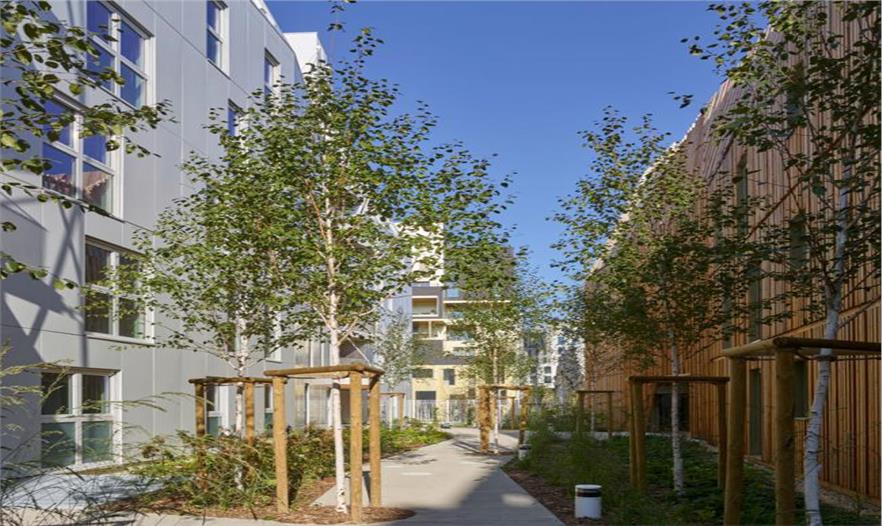 塞納河畔的比揚(yáng)古公園(Parc de Billancourt)一帶原本是雷諾汽車制造廠的所在地。法國建筑事務(wù)所 tetrarc architectes 參與了當(dāng)?shù)?74 公頃的改造項(xiàng)目,目前可以看到兩幢公共住宅的設(shè)計(jì)。