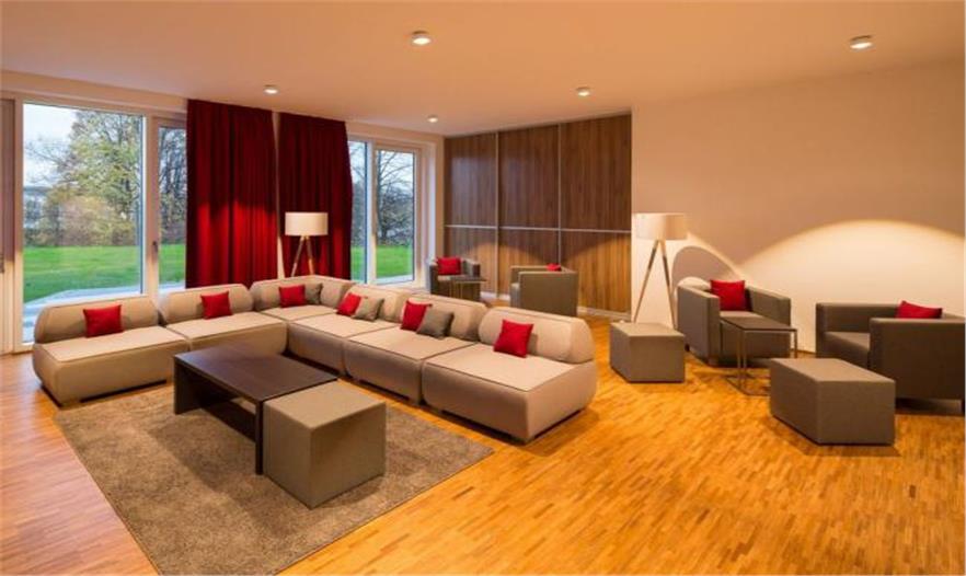 這里沒有和麥當(dāng)勞相關(guān)的任何食品,只是一個為患病兒童的家人提供的臨時住所。室內(nèi)用大量的木質(zhì)結(jié)構(gòu)和柔和的燈光以營造一個居家的環(huán)境。一樓有開放式的公共廚房和長桌,方便住在這里的家長相互交流和鼓勵。