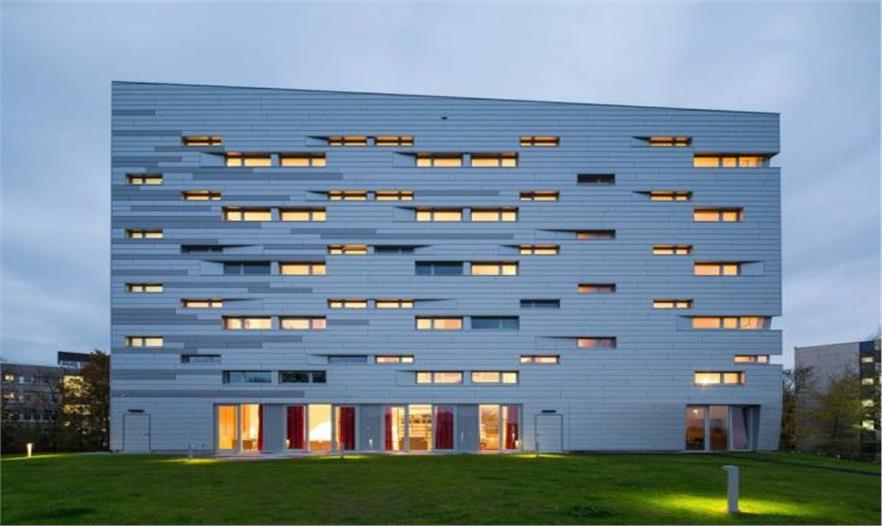 德國圣奧古斯丁有一所灰色的鉤形建筑,落筆時的一折離開的地面,構(gòu)成了一個隱藏的入口。走近后才會在入口旁發(fā)現(xiàn)“Ronald McDonald Haus”的門牌,是“麥當(dāng)勞叔叔之家”的意思。