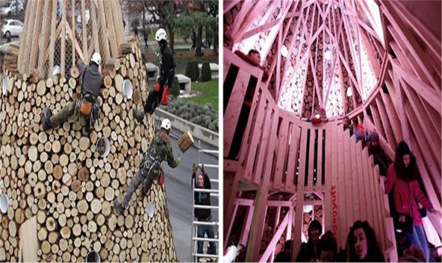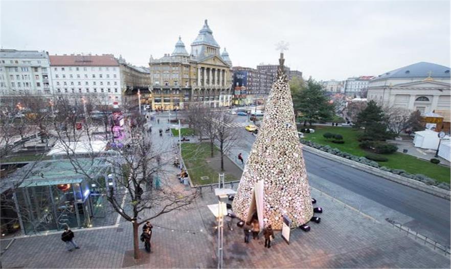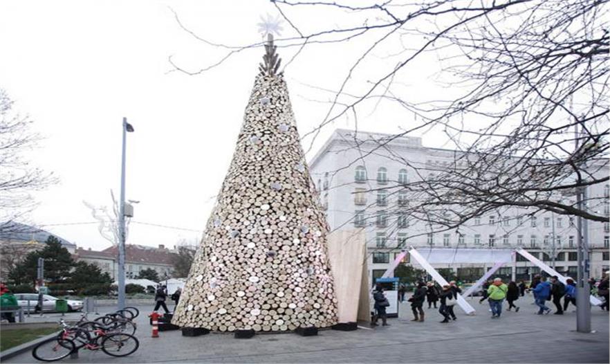 這個圣誕樹位于布達佩斯的Erzsébet Square廣場,由1萬個木柴建造而成,重達40噸。這棵樹幫助支持Hungarian Interchurch Aid組織的活動,所有的木柴會在1月份期間送給需要的家庭。