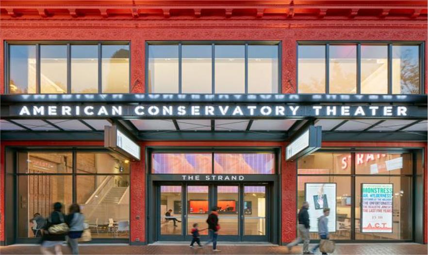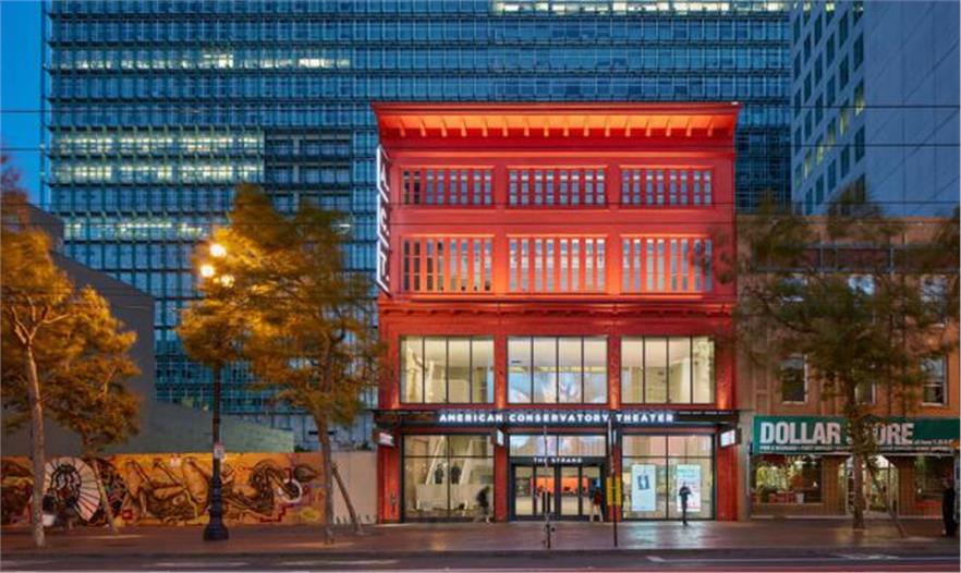 有人說(shuō),美國(guó)戲劇學(xué)院是舊金山最棒的地方之一,如果你是當(dāng)?shù)厝四憔椭浪懿诲e(cuò),如果你不是當(dāng)?shù)厝?可能就會(huì)錯(cuò)過(guò)它。他們把現(xiàn)代和不同時(shí)期的表演結(jié)合起來(lái),從單人表演到音樂(lè)劇。只要你不在預(yù)演的晚上去,你就有得到打折的機(jī)會(huì)或者同天半價(jià)票。 現(xiàn)在,美國(guó)戲劇學(xué)院又有了新去處。SOM 改造的這處空間看上去更像是一個(gè)大型社區(qū)。在 SOM 設(shè)計(jì)總監(jiān) Michael Duncan 看來(lái),這里雖然是一處有著 100 年歷史的老建筑,但它卻有著良好的架構(gòu),坐擁舊金山非常重要的一條軸線市場(chǎng)街。 1917 年建成時(shí),這座擁有 1200 個(gè)座位的劇院經(jīng)常放映用現(xiàn)場(chǎng)音樂(lè)伴奏的無(wú)聲電影。到了 1928 年,它被命名為 The Strand,一直運(yùn)營(yíng)至 2003 年,之后便廢棄了。 近年來(lái),隨著Twitter 、Square 以及 Spotify 等科技公司接連入駐周邊街區(qū),美國(guó)戲劇學(xué)院也順勢(shì)買下了這幢老建筑,令其重生。 此番設(shè)計(jì)團(tuán)隊(duì)恢復(fù)了建筑原先混凝土與鋼柱組成的立面結(jié)構(gòu),并將其涂刷成紅色,還加入了全新的 logo 和圖像。內(nèi)部墻面則是被石膏覆蓋。