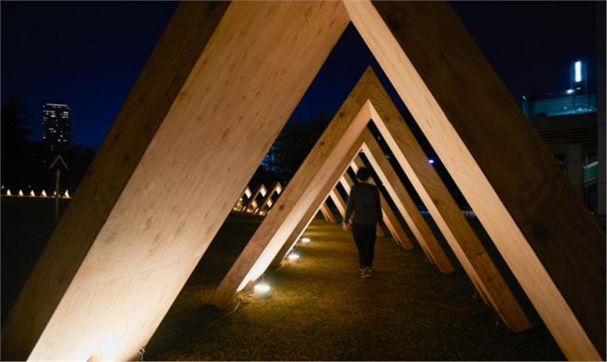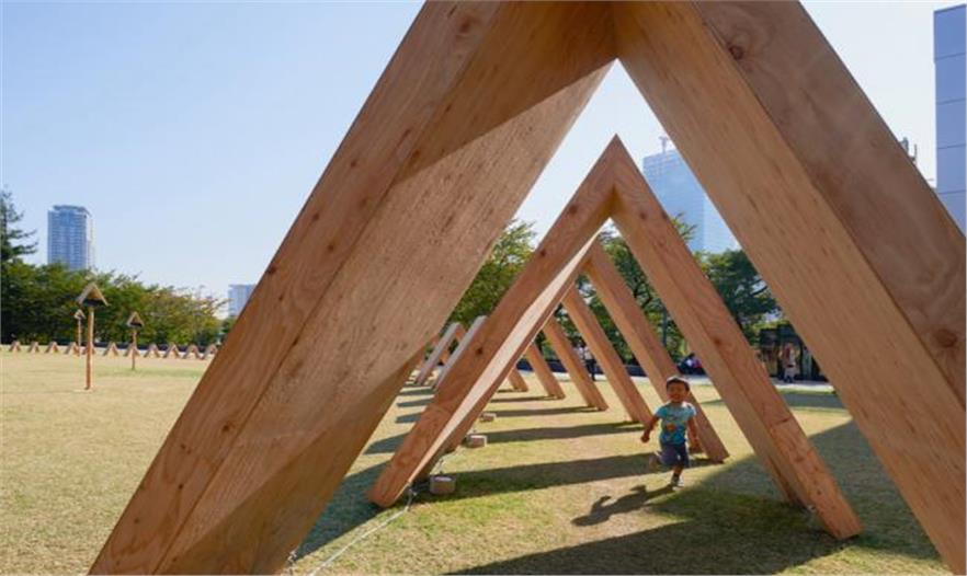 ↑Tsumiki展館是搭建在東京市中心公園的臨時(shí)結(jié)構(gòu)