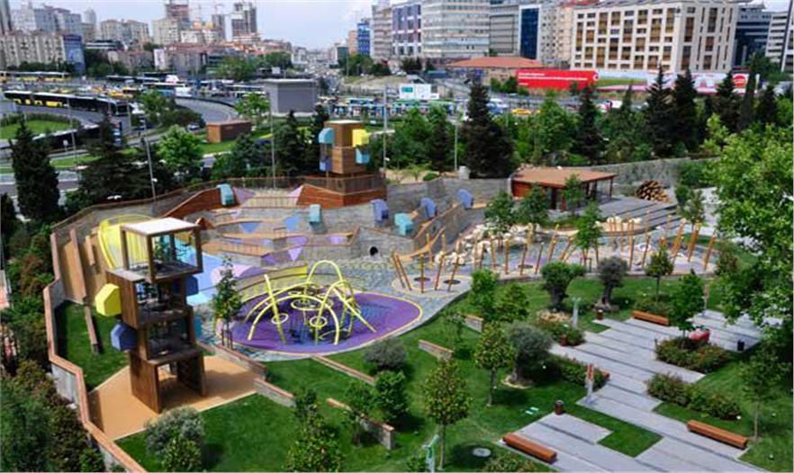 伊斯坦布爾位于2大州之間,佐魯中心將私人、半開放花園、建筑立面和房屋陽臺與一個復(fù)雜的綠色屋頂結(jié)合起來,建造出一個現(xiàn)代化的區(qū)域。在這個建筑群的游樂場上,孩子們喜歡公園里的冒險和游樂設(shè)施,這也是幻想成真的地方。