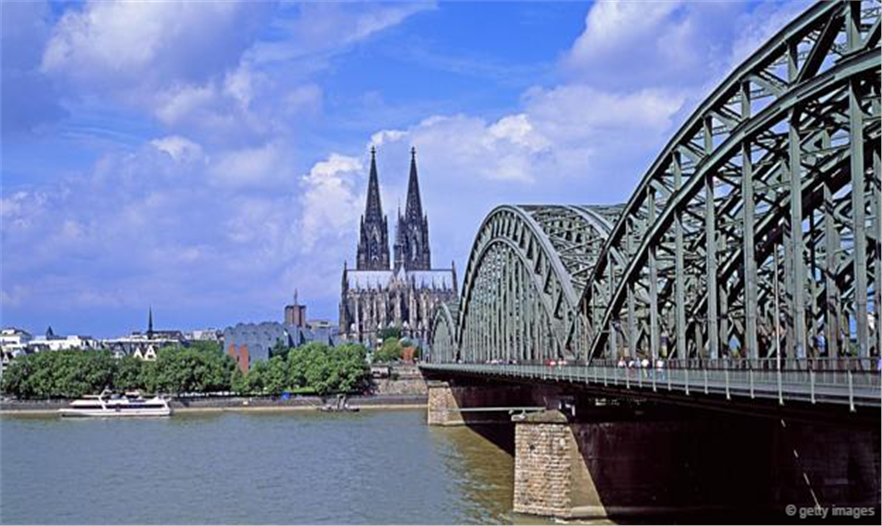 科隆霍亨索倫橋始建于第一次世界大戰(zhàn)前,該橋設(shè)計(jì)獨(dú)特,體現(xiàn)了當(dāng)時(shí)石材工程與鋼鐵結(jié)構(gòu)的完美結(jié)合。大橋于1911年完工,橋長(zhǎng)共409米,橫跨萊茵河。1945年3月,為了減緩盟軍向柏林行進(jìn)的速度,橋梁被德軍炸毀?,F(xiàn)在該橋已被成功修繕并成為德國(guó)最繁忙的鐵路線路。橋上的鋼鐵結(jié)構(gòu)形似鯨魚的脊背,柵欄上掛滿了情侶們的“愛(ài)情鎖”。如今這座橋已經(jīng)成為團(tuán)結(jié)和愛(ài)的象征。