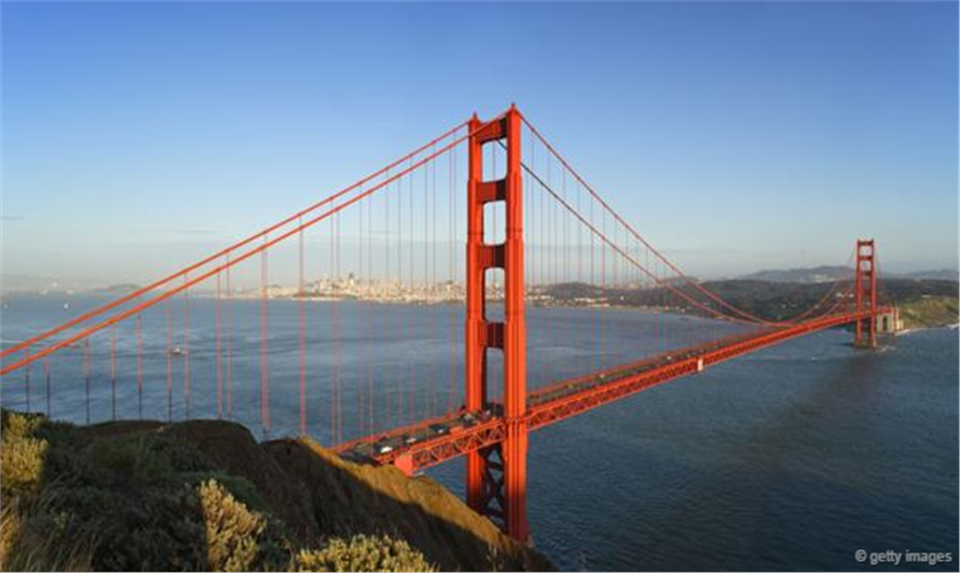 位于美國(guó)舊金山的金門大橋是世界著名的橋梁之一,也是近代橋梁工程的一項(xiàng)奇跡。大橋雄峙于美國(guó)加利福尼亞州長(zhǎng)1900多米的金門海峽之上,歷時(shí)4年,利用10萬(wàn)多噸鋼材,耗資達(dá)3550萬(wàn)美元建成。橋長(zhǎng)共2.7公里,橋體為橙色,跨度驚人。該橋于1937年對(duì)外開放,由工程師兼詩(shī)人約瑟夫·施特勞斯設(shè)計(jì),其講究的懸架結(jié)構(gòu)和優(yōu)美的藝術(shù)裝飾塔令人贊嘆不已。