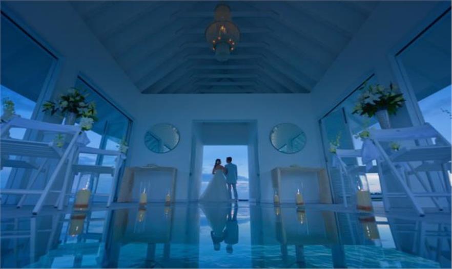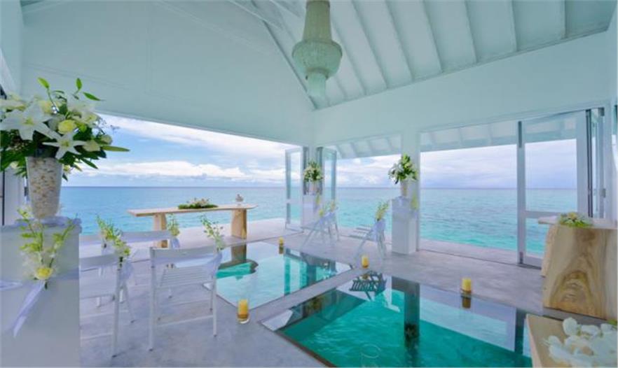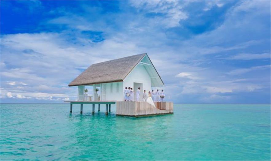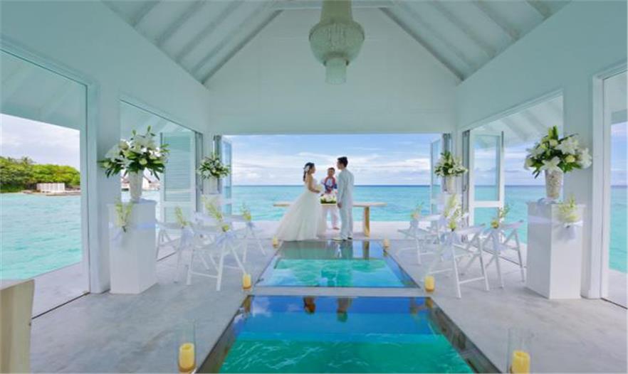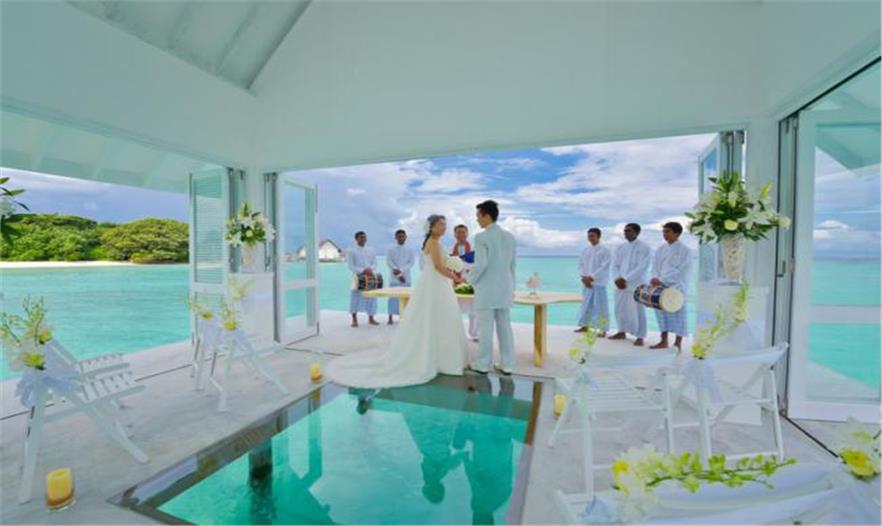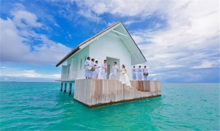 蘭達(dá)吉拉瓦魯島四季度假村公布了一個(gè)漂浮的婚禮亭,位于風(fēng)景如畫的馬爾代夫,成為游客獨(dú)特的婚禮舉辦地。