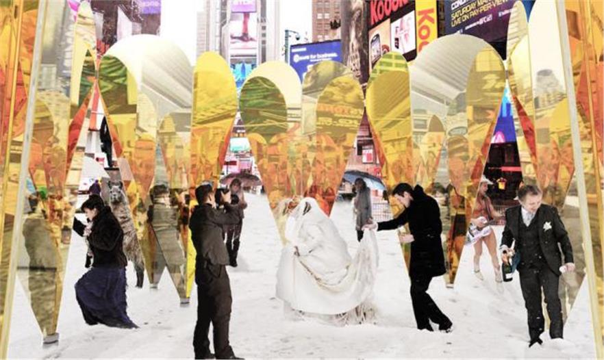 “我們很高興能夠為情人節(jié)創(chuàng)造 Hearts of Hearts 這個裝置,它們把時報廣場裝點出了濃濃愛意。這是一個特別的機會,它為情侶們在城市的中心提供了一個親密空間,我們希望游客們會喜歡上這里。” Collective-LOK 團隊表示。
