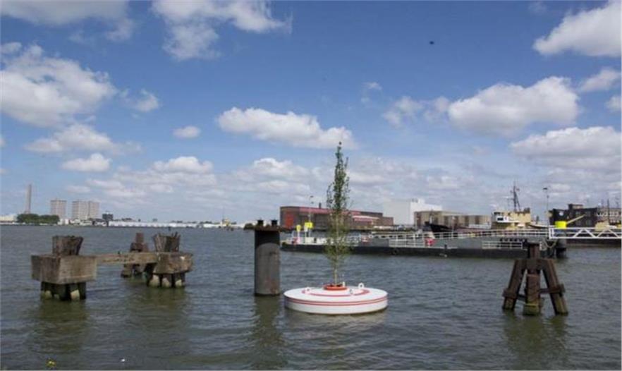 荷蘭一群企業(yè)家和設(shè)計(jì)師觀看了藝術(shù)家豪爾赫•巴克(Jorge Bakker)的作品—In Search Of Habitus,想要為鹿特丹建造一個(gè)實(shí)物大小的景觀,在水面上“種”20棵樹,就像漂浮的捕魚木筏一樣。