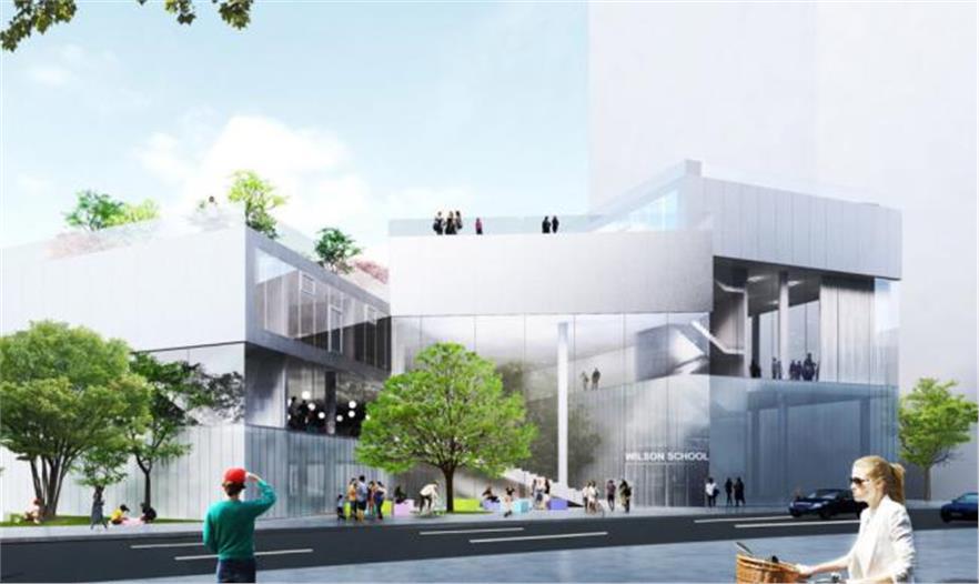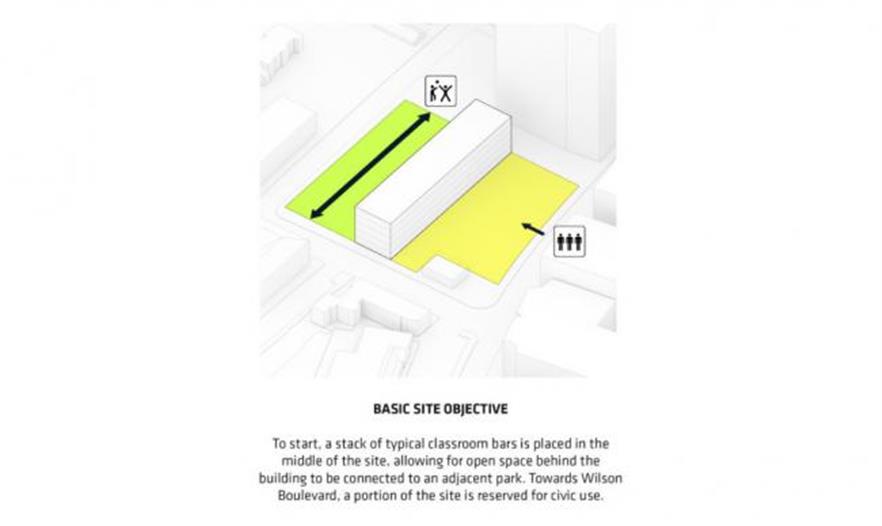 這個1.58萬平方米的威爾遜中學(xué)位于羅斯林中央商業(yè)區(qū)的邊緣,像是一座單層建筑,同時依然能獲得一個5層建筑的空間優(yōu)勢。BIG事務(wù)所將該區(qū)域分成3個主要功能空間:一個街道水平的運動場、層疊的教室以及市民使用的空間。建筑師然后以一個中心點呈扇形分布這些教室,構(gòu)成5個旋轉(zhuǎn)和可進(jìn)入的露臺,向下直達(dá)休閑區(qū)。