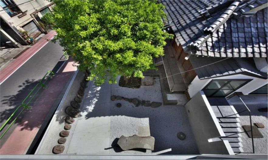 用來(lái)鋪砌庭院地面的是花崗巖經(jīng)風(fēng)化、剝蝕等自然原因而形成的鵝卵石,與種植的樹(shù)木一道創(chuàng)造了一個(gè)非正式的庭院休閑空間。