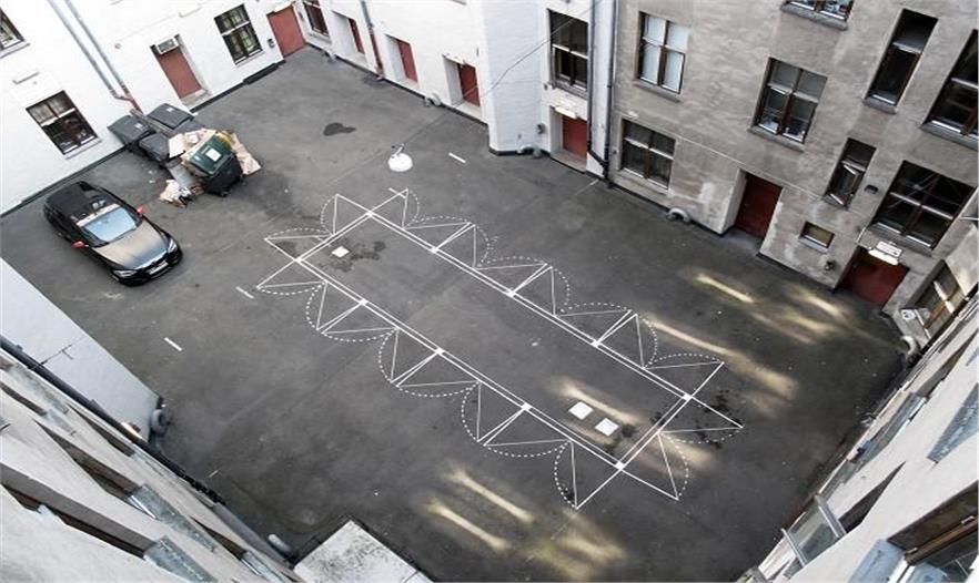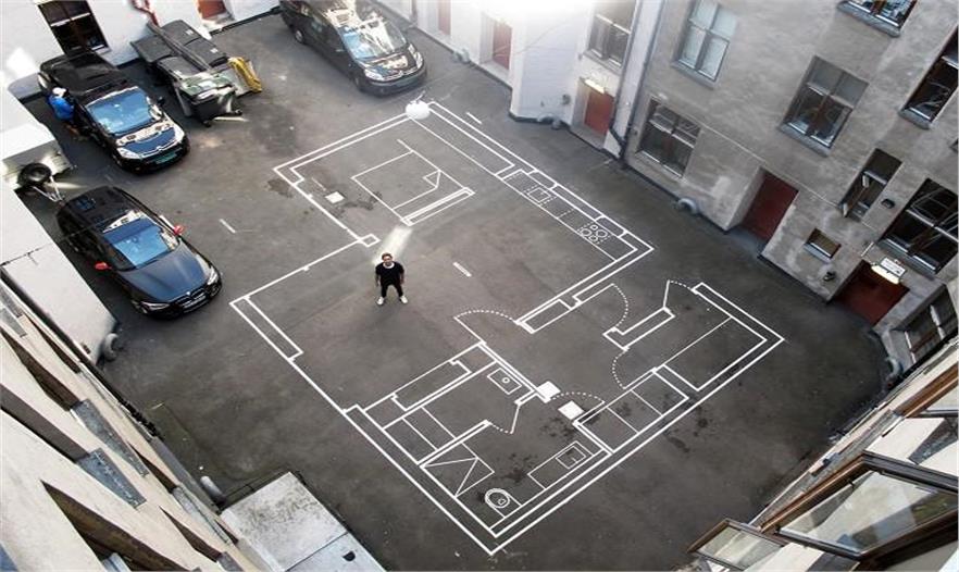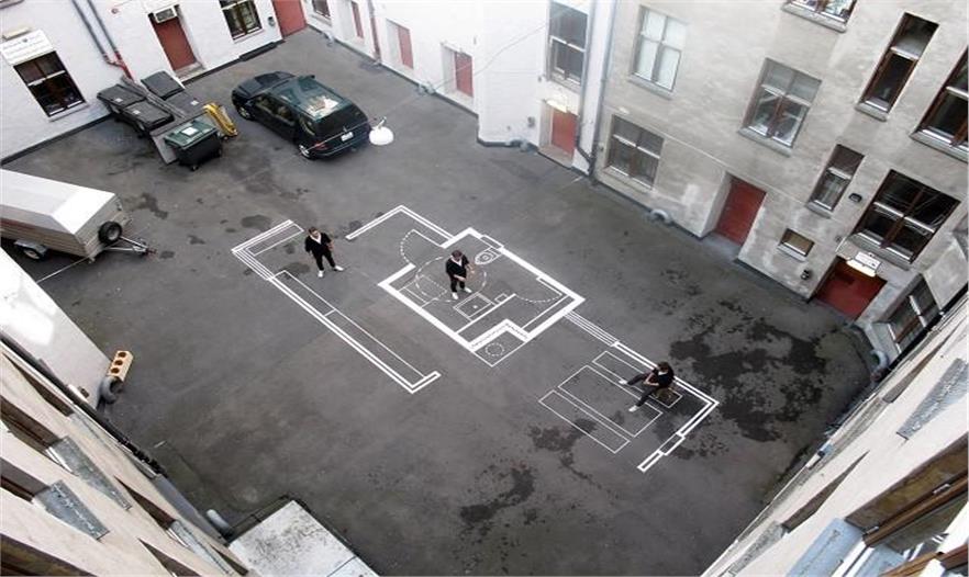 基于挪威的建筑工作室Vardehaugen建筑設(shè)計工作室最近在自己的后院的地面上畫了一些住宅的1:1整體平面圖。