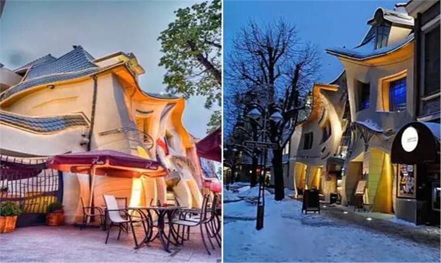 這個(gè)像是服了五毒化骨散的購(gòu)物中心(專題閱讀)位于波蘭北部的海濱城鎮(zhèn)索波特,本名Krzywy Domek。人們形象的給它起了個(gè)昵稱:歪歪樓。設(shè)計(jì)者Szotyńscy & Zaleski的靈感來(lái)自于Jan Marcin Szancer和Per Dahlberg在童話故事中的插畫(huà)。其“磚瓦”是以火山巖為材料,每一塊都是不規(guī)則的。墻壁、大門(mén)、屋頂、梁柱、窗戶、與大門(mén)也都不是直線