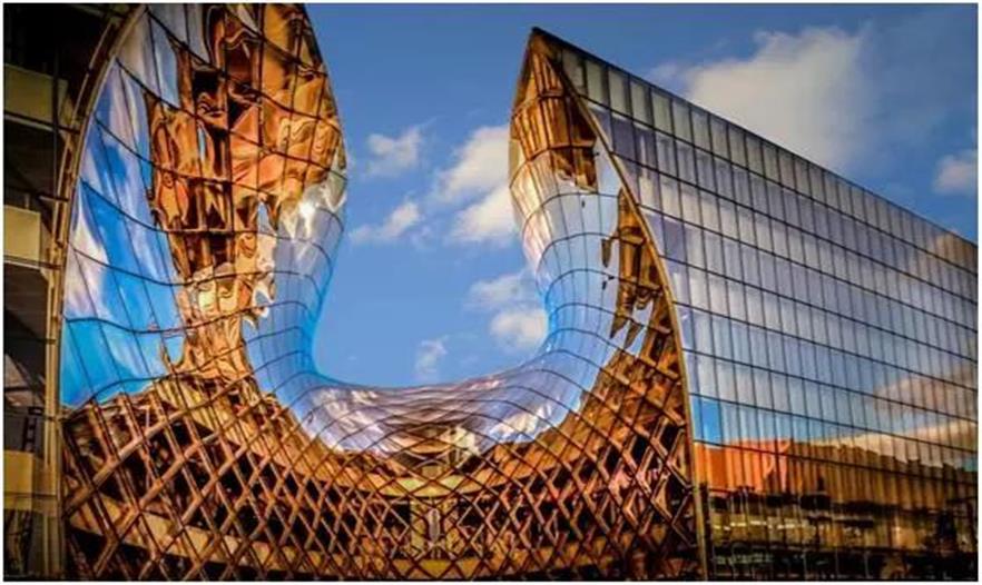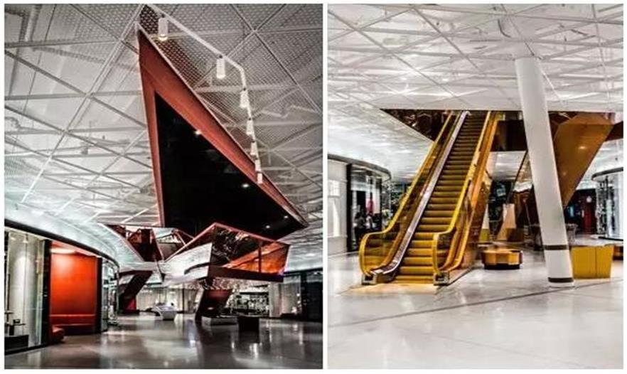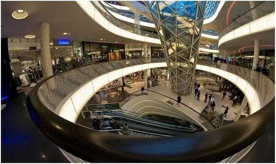 MyZeil購(gòu)物中心(專題閱讀)是德國(guó)法蘭克福市最大的購(gòu)物中心。讀起來(lái)很像“買菜兒”有木有。其設(shè)計(jì)靈感源于峽谷意向——建筑與建筑間的大峽谷。外立面上的巨大空洞仿佛是邂逅龍卷風(fēng)之后留下的印記。陽(yáng)光還會(huì)通過(guò)半透明的玻璃外殼,在商場(chǎng)內(nèi)奏起光與影的交響曲?!?nèi)部巨大的透明玻璃通道猶如一條巨龍,給人視覺(jué)上的沖擊。在購(gòu)物中心底部還有一個(gè)長(zhǎng)達(dá)47米的自動(dòng)扶梯直達(dá)購(gòu)物中心六層。