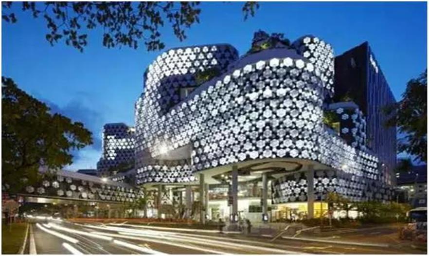 Iluma坐落在新加坡著名的白沙浮街區(qū)(Bugis Street),是新加坡第一個(gè)城市娛樂(lè)中心。在這棟建筑中,新加坡本土設(shè)計(jì)事務(wù)所WOHA architects巧妙的利用線性結(jié)構(gòu)和與曲線形結(jié)構(gòu),兩種建筑元素在這里實(shí)現(xiàn)了無(wú)障礙交流。外表皮以帶有內(nèi)置發(fā)光燈管網(wǎng)絡(luò)的六邊形玻璃材料重復(fù)組成。