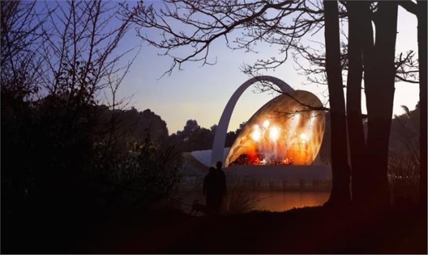 "雙曲的屋頂延續(xù)了室外劇院的自然斜坡,室外劇院位于山丘上,可以俯瞰公園的景觀。建筑戲劇化地上升,為演出區(qū)域提供了足夠的高度," 公司總監(jiān) Jason Flanagan 表示。