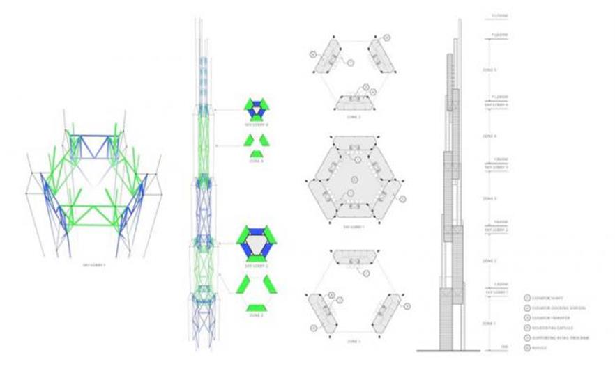 一座1英里高的塔樓在工程上具有很大的挑戰(zhàn),其中一個可以抽水并為居民分發(fā)淡水資源。立面上增加的表面積說明了這一問題。水資源在這座建筑中進行采集、處理以及儲存,并利用重力進行分配。另一項挑戰(zhàn)是解決1英里天空塔中55000名居民的交通問題。設(shè)計利用了磁懸浮技術(shù)。電梯運輸系統(tǒng)采用了 ThyssenKrupp 公司的 MULTI 無纜繩電梯,可以在垂直和水平向自由地移動。