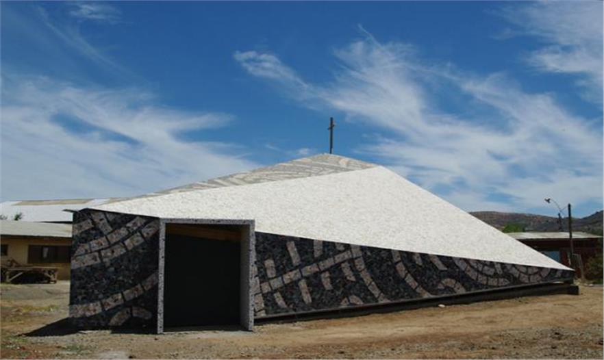 建筑參考了周圍社區(qū)的布局方式,該教堂具有不規(guī)則的表面,飾面很像馬賽克。預(yù)算的限制要求建筑必須要很便宜,但是室內(nèi)要求不能有柱子,教堂采用了星星的布局,就像是黑暗中的一點(diǎn)光亮。