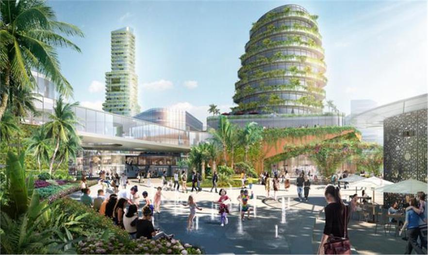 其開發(fā)策略包括了綜合用途以及適用于步行的布局方式,并連同建筑和自然環(huán)境之間的共生關系一起進行設計。并將該地區(qū)通過輕軌和渡輪的方式與周邊的新加坡和馬來西亞交通基礎設施的擴展方案連接在一起。
