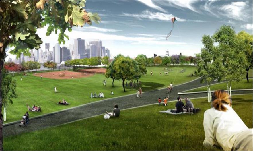 12.2米(40英尺)的Slide Hill將設有4個兒童滑梯(有該市最長的一個滑梯),而Discover Hill則有英國藝術家Rachel Whiteread完成的一個雕塑。7.6米(25英尺)的Grassy Hill會提供一個微微曲折的草坪,俯瞰著整個島嶼——在曼哈頓垃圾場800碼外有之前的一個軍事基地。