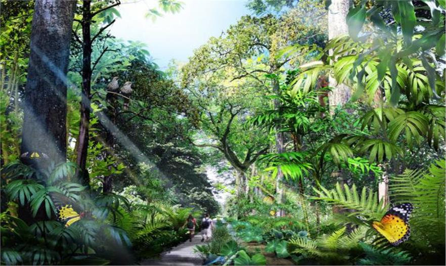 這個24.1千米(15英里)的走廊是由日本事務所Nikken Sekke設計,稱為“生命線”,將融入一個鋪裝的自行車道、自然保護區(qū)、攀巖墻和水景。這個公園也將包括8個“活動點”,包括一個戶外放映區(qū)、雨林觀景臺和天然木板路。