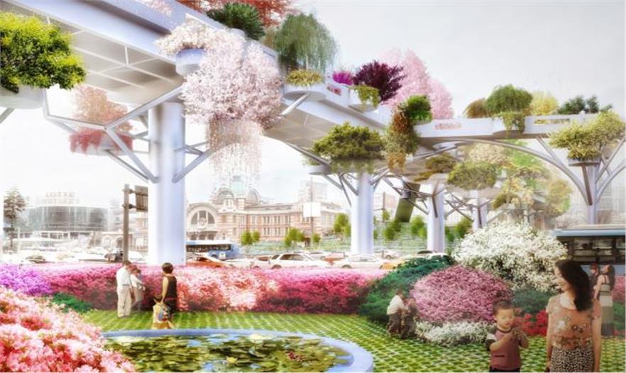 韓國聘用荷蘭事務所MVRDV將938米(3077英尺)的天橋(自被認為無法承重重型車輛之后就被關閉)轉變成一個植被繁茂的人行道。