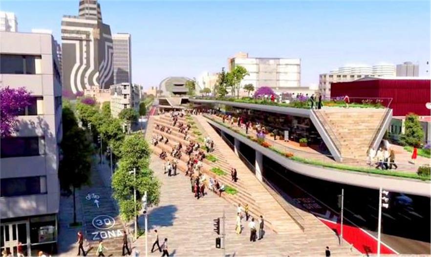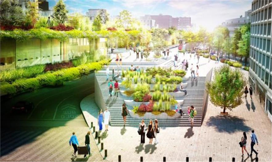 這個裝置將由高層的零售區(qū)和高架的綠蔭道構成,另外還有一條主行人道,在路面水平上沿著該大道的中心行走。植物由回收的雨水灌溉,不僅為游客提供陰涼,還會幫助緩解熱島效應。
