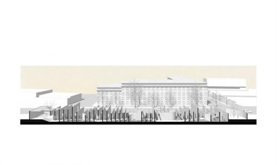 二等獎(jiǎng)的設(shè)計(jì)方案相對(duì)比較簡(jiǎn)單,它創(chuàng)建了一個(gè)獨(dú)特的環(huán)境,鼓勵(lì)人們?cè)诖朔此?,評(píng)審團(tuán)寫(xiě)到。它在場(chǎng)地上排列了一系列的重復(fù)性的紀(jì)念墻壁。這可以讓游客體驗(yàn)到來(lái)自水中的感受,你可以走過(guò)去,也可以駕車(chē)過(guò)去。