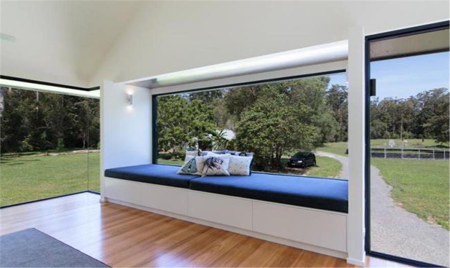 室內(nèi)設(shè)置拱形屋頂,使起居空間更加開(kāi)闊。窗臺(tái)座位區(qū)供人們?cè)诟咛幱^賞周?chē)淖匀痪吧?/p>