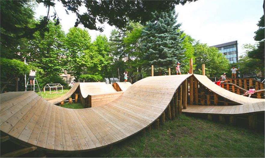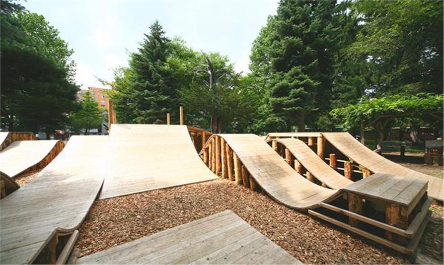 在公園調(diào)研期間,多次邀請孩子們參加舉辦的研討會,請他們提出建議,希望在運動場上能夠看到什么。Igarashi的設(shè)計方案替代傳統(tǒng)的形式,鼓勵孩子們更加自由和直觀地使用設(shè)施。五十嵐淳說:“當(dāng)孩子們在大自然中發(fā)揮他們純粹的想象力玩耍時,他們會利用環(huán)境中的一切發(fā)現(xiàn)新奇的玩法,就像在森林里一樣。”