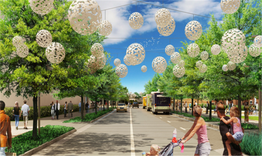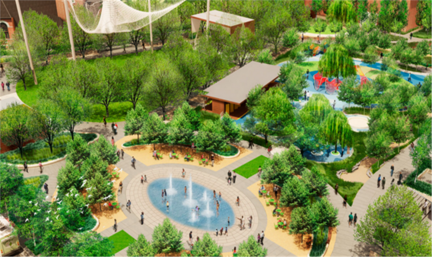 Lebauer公園位于格林斯博羅市區(qū)中心,最后階段將重組主要的市區(qū)街道,加強(qiáng)與未來Steven Tanger表演藝術(shù)中心的聯(lián)系,成為一個新文化藝術(shù)區(qū)的中心。該公園建在音樂草坪和表演臺周圍,裝飾有波士頓藝術(shù)家Janet Eichelman設(shè)計(jì)的固定裝置。這個靈活規(guī)劃的公園也將包括兒童花園和互動式水景、狗花園、閱讀室、游戲區(qū)、槌球場。該公園也將“自我經(jīng)營”、自給自足,安置幾個食物和飲料亭,舉辦各種各樣的節(jié)日和其他市民活動。