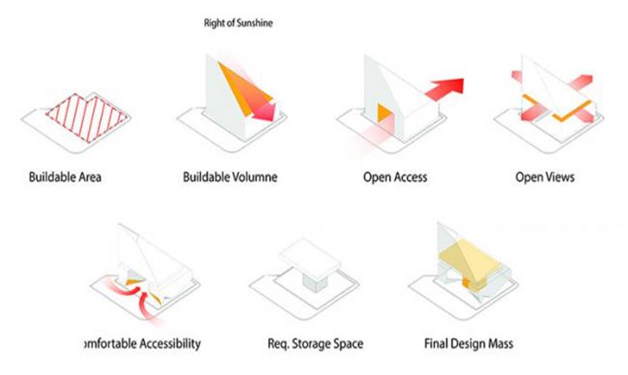 TheeAe 的方案關(guān)注場地所在的區(qū)域,創(chuàng)造了一個不影響周邊采光的坡頂方案。