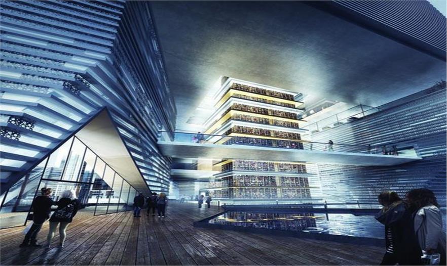 書籍儲藏在建筑的5000平米空間內(nèi),80%位于建筑的五層。現(xiàn)有書目被防止在從外面可以看到的透明核心中的書架內(nèi),向公眾進行展示。