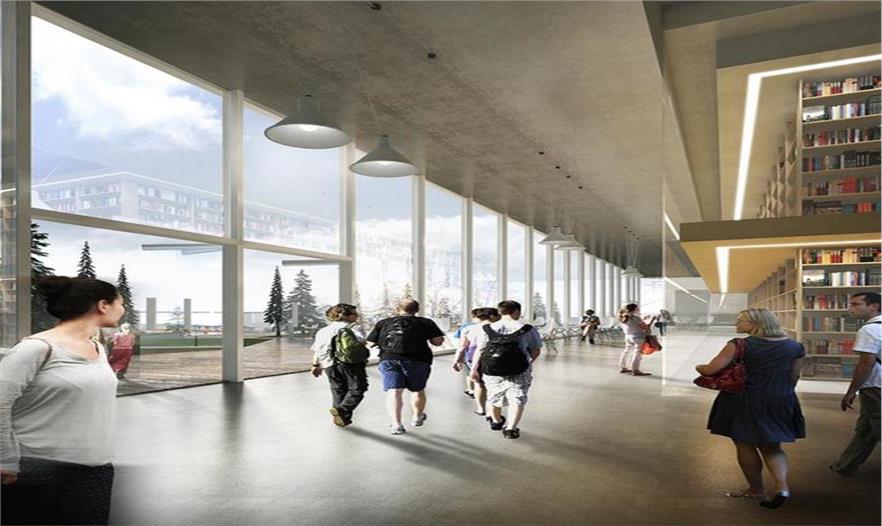 地下空間與儲藏核心相連,讓參觀者即便在地下停車時也可以感受到圖書館的氛圍。首層、二層和三層是大廳和活動空間,以及員工辦公室。辦公室可以利用非公共的專用通道去往儲藏空間。