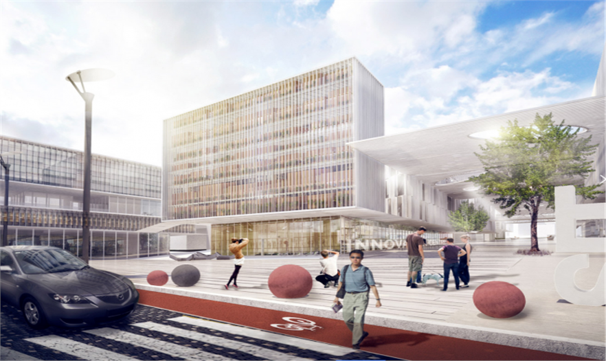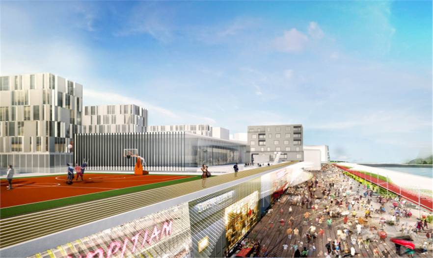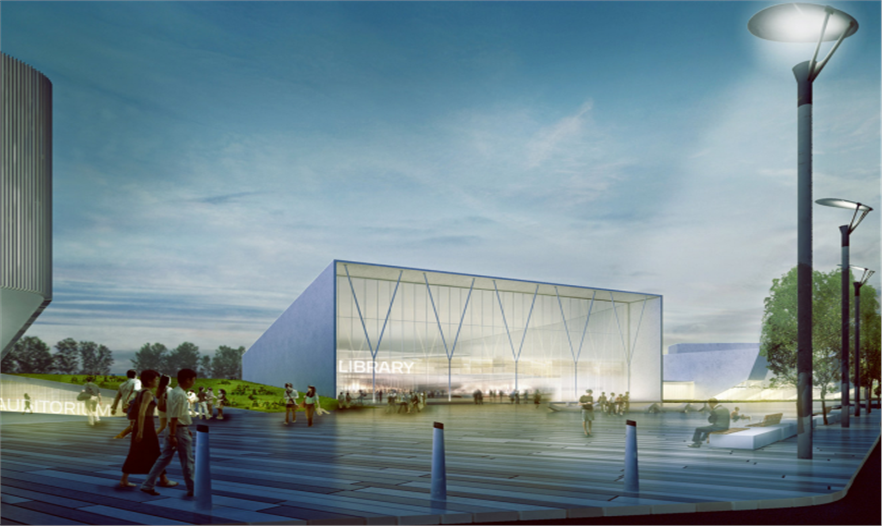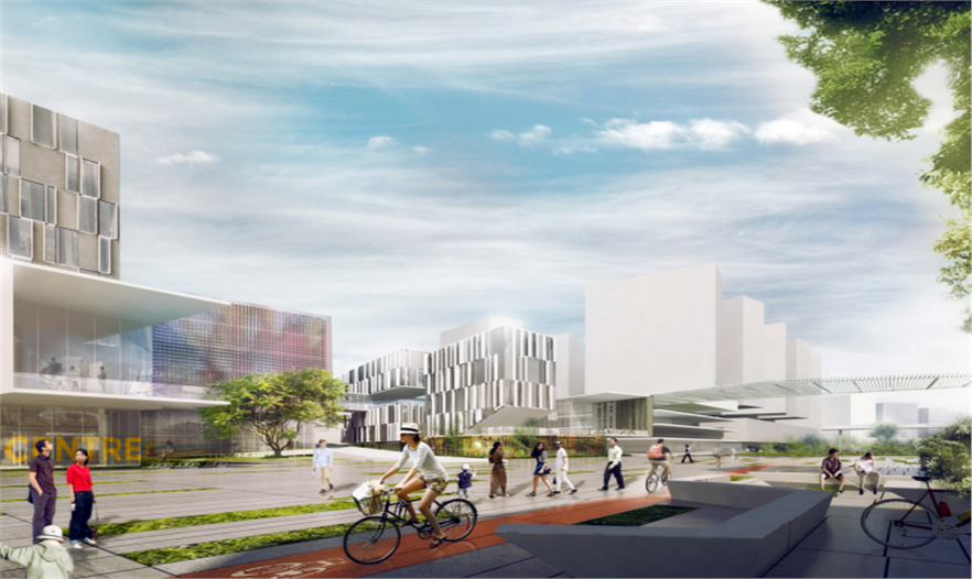 新加坡科技學院(SIT)主體規(guī)劃方案設計出一個具有啟發(fā)性且典型的大學校園,融入創(chuàng)意性城市策略和空間結(jié)構(gòu),構(gòu)建社區(qū)網(wǎng),培養(yǎng)合作、啟發(fā)創(chuàng)新。這個主體規(guī)劃方案被認為是合作性的連續(xù)景觀,將校園與其鄰近社區(qū)無縫連接,創(chuàng)造出南北林蔭道,定義出一個共享區(qū)域,創(chuàng)意性聚集功能和校園規(guī)劃在此重疊,開放和協(xié)同作用共存。該校園被設想成城市縮影,具有同等比例的建筑,規(guī)劃出有意義的開放空間,如街道、廣場、庭院、開放綠地空間。這些空間揉合到該城鎮(zhèn)的整體結(jié)構(gòu)中,將大學與該城鎮(zhèn)完美地融合起來。