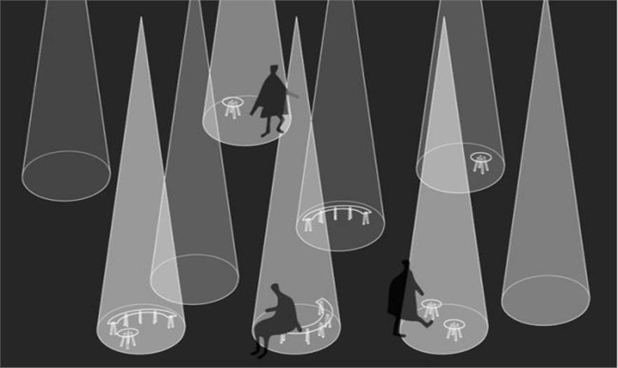 “采用聚光燈是一種敬意的做法(曾經(jīng)在劇院用過一次)。聚光燈會作為一種建筑形式連接到時尚,空間和森林中。”藤本補充說道。