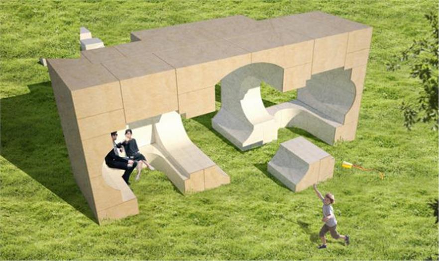 NLÉ的kunlé adeyemi’的設(shè)計(jì)是一個(gè)反向?qū)鹘y(tǒng)卡洛琳女王神廟進(jìn)行復(fù)制的建筑。adeyemi的設(shè)計(jì)采用砂石預(yù)制的砌塊來(lái)創(chuàng)造房間、門道和窗戶,與訪客互動(dòng),向神廟的空間、材料和粗野的形式致敬。