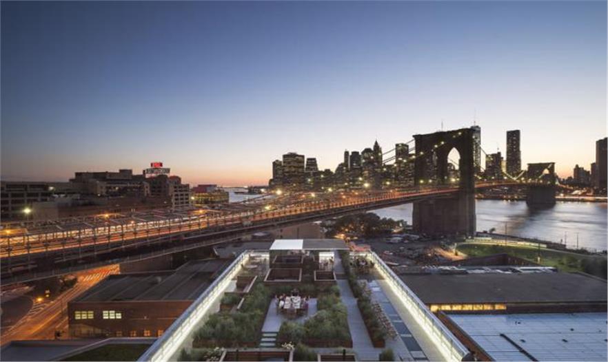 James Corner Field Operations 建筑事務(wù)所完成了一個(gè)將近6,000 平方英尺的屋頂花園項(xiàng)目,該項(xiàng)目位于紐約市布魯克林區(qū)的 DUMBO社區(qū)中心 。 這個(gè)屋頂花園坐落在一棟17層樓高的樓頂,該大樓是由 Leeser Architecture 建筑事務(wù)所設(shè)計(jì)的,開(kāi)發(fā)商為T(mén)wo Trees Management管理公司。DOCK 街的這個(gè)屋頂露臺(tái)可以讓居民看到布魯克林大橋,曼哈頓大橋,東河以及曼哈頓天際線的全景風(fēng)光。