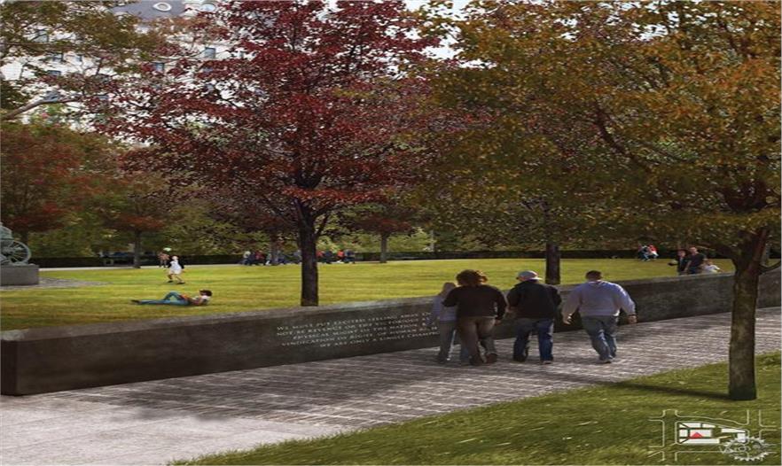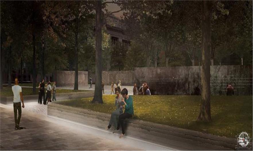 Joseph Weishaar: 最終的設(shè)計成果兼具公園與紀(jì)念碑的特性,同時也充滿了合二為一的魅力。世界上對于紀(jì)念公園的先例著實不多。這無疑是最大的挑戰(zhàn)。我認(rèn)為在最后很多設(shè)計都是分開的,會分別針對紀(jì)念碑部分或圍繞它的公園部分。所以在公園的設(shè)置中并沒有那么多奏效的紀(jì)念元素存在。我可以從350個中提取出20個來。我認(rèn)為將公園與紀(jì)念綜合起來而不是分離。公園真的是建立在紀(jì)念元素基礎(chǔ)上的,所以如果你一開始抽離紀(jì)念元素,公園空間也會隨之減少。弄清楚如何設(shè)計一個能與建筑融為一體的公園是我最大的挑戰(zhàn)。